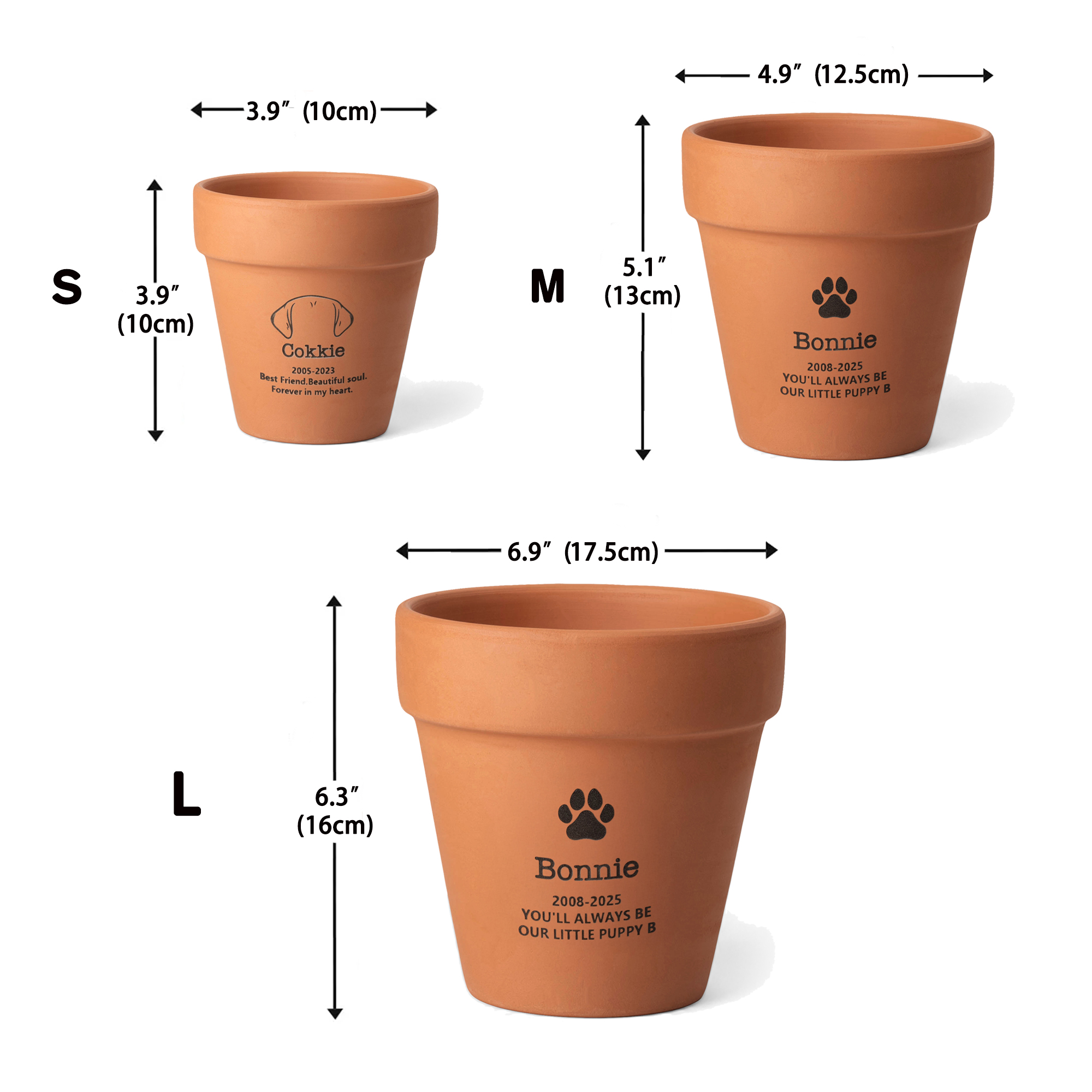 Personalized Design - This plant pot features a touching and customizable design, including engraved dog ears and the name and date of your beloved pet. It serves as a heartfelt tribute to honor the memory of your furry friend, creating a lasting keepsake that celebrates their life and the joy they brought to your home.